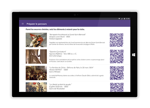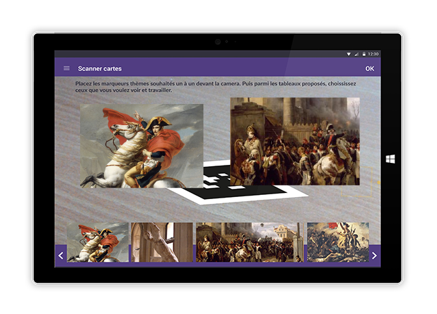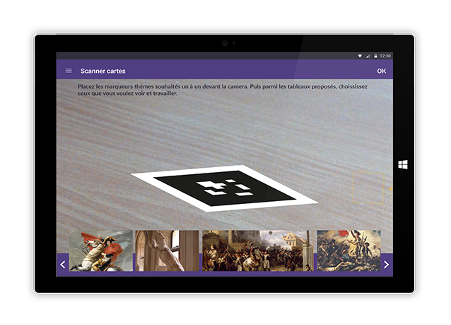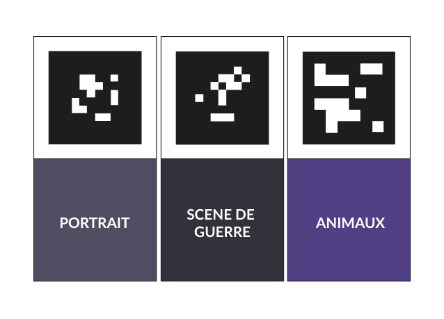 Le marker généré, par le choix d’oeuvre sur tablette, permet de se projeter dans la salle d’exposition et d’avoir une première approche, à échelle d’enfant, de l’oeuvre, de sa grandeur, de ses couleurs, etc.