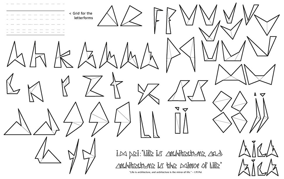 Design of a typeface based on an architect. Here the architect was Ieoh Ming Pei.